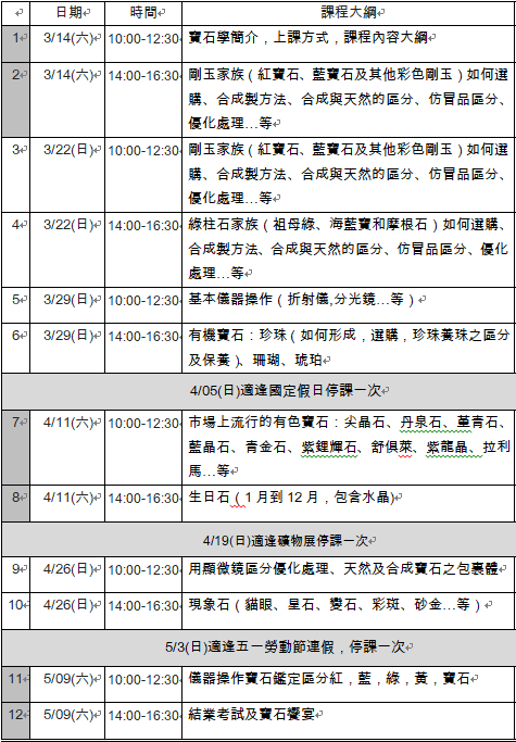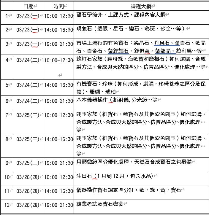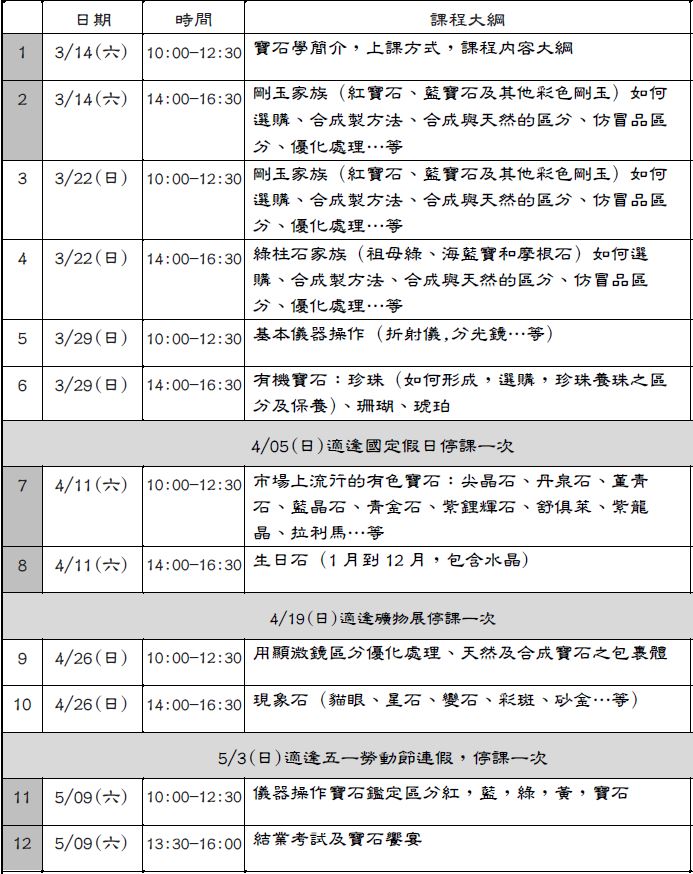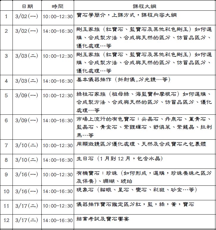 《彩寶鑑賞-十二週普通晚上班 3月04號(三)開課 》
