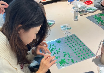 學員們圍觀自動化加工設備。從雕工設計到顏色篩選,都可以透過高科技輔助,將不確定性降到最低。