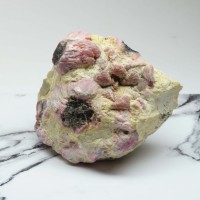 因外型酷似蘑菇,長相十分討喜成為礦物收藏家必收晶體,產自緬甸的紅色電氣石中,由許多紅色電氣石叢生的電氣石產狀,每個突起都代表一根電氣石晶體的結晶終端。
